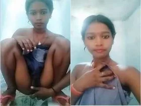 Small boobed Indian village girl flaunts her pink vagina