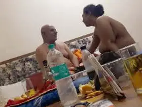 Horn-pointing husband woke up after a party and found his wife here sucking full cocks