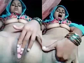 Married woman from a village pleasuring herself and revealing her large breasts on camera