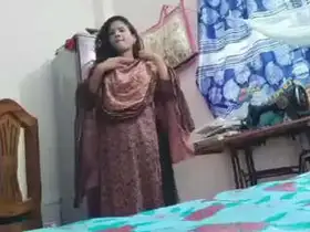 A stunning Indian girl with a camera captures her undressing and satisfying fans in this sexy video