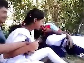 Beautiful college girl enjoys nature and have sex with her boyfriend in their vehicle.