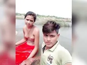 Boob show and outdoor fun with village sexy video made on a selfie camera