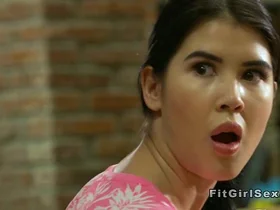 Fitness Gyms Flexible miniature beauty with bubbly buttocks filled with cock