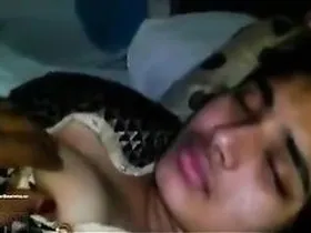 Beautiful sister-in-law helps new father to enjoy himself with her big breasts.