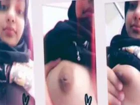 A beautiful devout Muslim woman who covers her body shows her big boobs on webcam