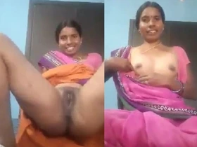 A housewife from Telugu shows her breasts and vagina