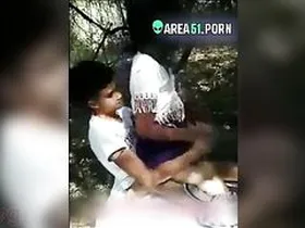 A young Tamil school girl with small breasts has fun having sex outside in the woods.
