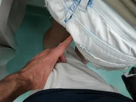 This is a real touching video of a stranger touching her pussy with his fingers on a public train.