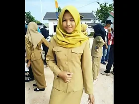 Young Indonesian woman in hijab pleasuring herself.