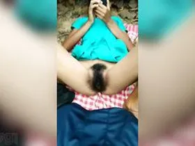 An Indian village school girl displaying her pussy outdoors