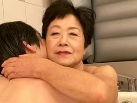 Lucky Japanese alms man fucks mother with grandmother's addition