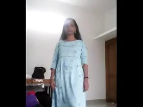 Steaming hot Indian college girl performs a striptease for her lover.