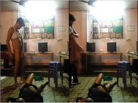 Hot housewife of Indian descent gives blow job to her husband’s bare penis and then rides him.