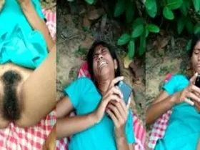 Married woman from South India shows her unshaven genitals outdoors in a live webcam session.