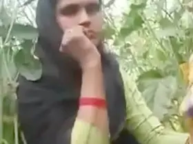 Pretty girl having sex with her boyfriend in a village outdoor setting