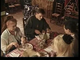 A ripe grandmother surrounding a gynecologist shouting companionship
