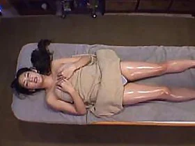 Old step-mother has rough bath time with oil massage and lubrication.