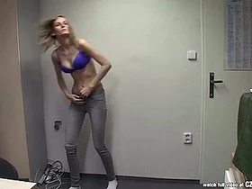 Teen skinny blond Edin Blair has a great time with a quick sex session