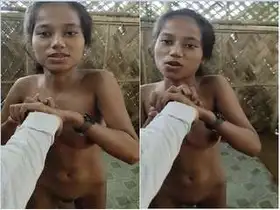 Small-framed teen sharing photos of her bare breasts in the bathroom