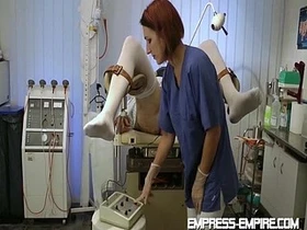 Basket dangled from her nipples in extreme boobs and sex toy dominance