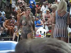 See how a beautiful adult film star from India desi bhabi performs an outdoors wrestling match and exposes her breasts.