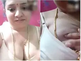 A wife from a North Indian house gets her breasts fondled and kissed by an explicit video.
